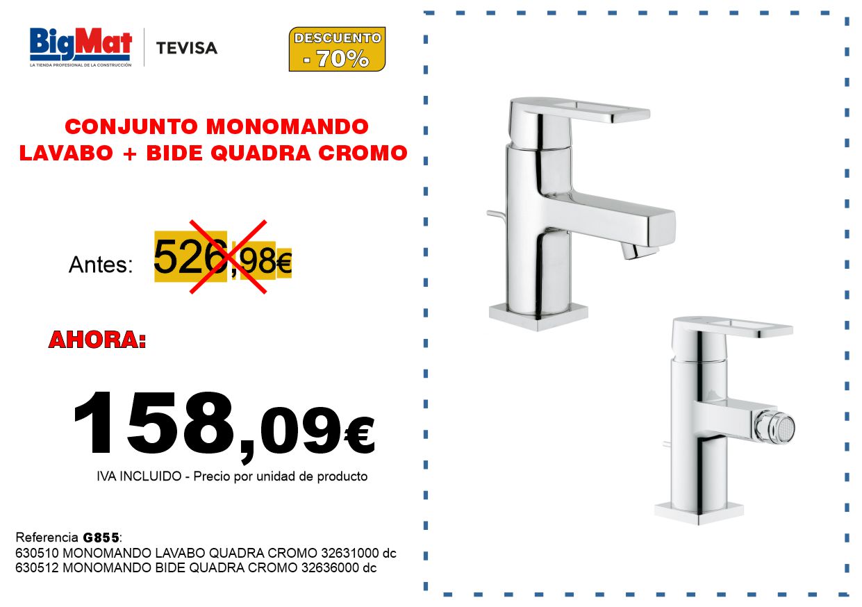 CONJUNTO MONOMANDO LAVABO + BIDE QUADRA CROMO