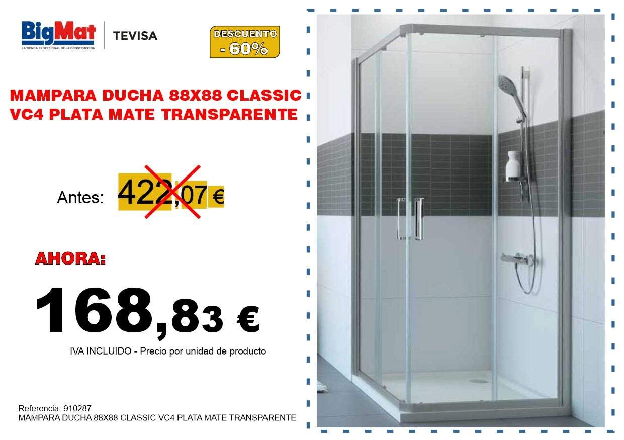 MAMPARA DUCHA 88X88 CLASSIC VC4 PLATA MATE TRANSPARENTE