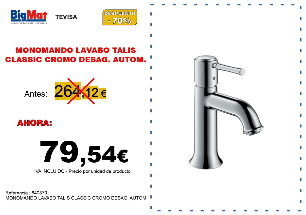MONOMANDO LAVABO TALIS CLASSIC CROMO DESAG. AUTOM