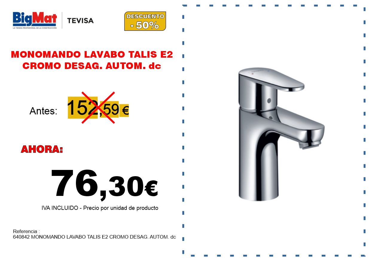 MONOMANDO LAVABO TALIS E2 CROMO DESAG. AUTOM.