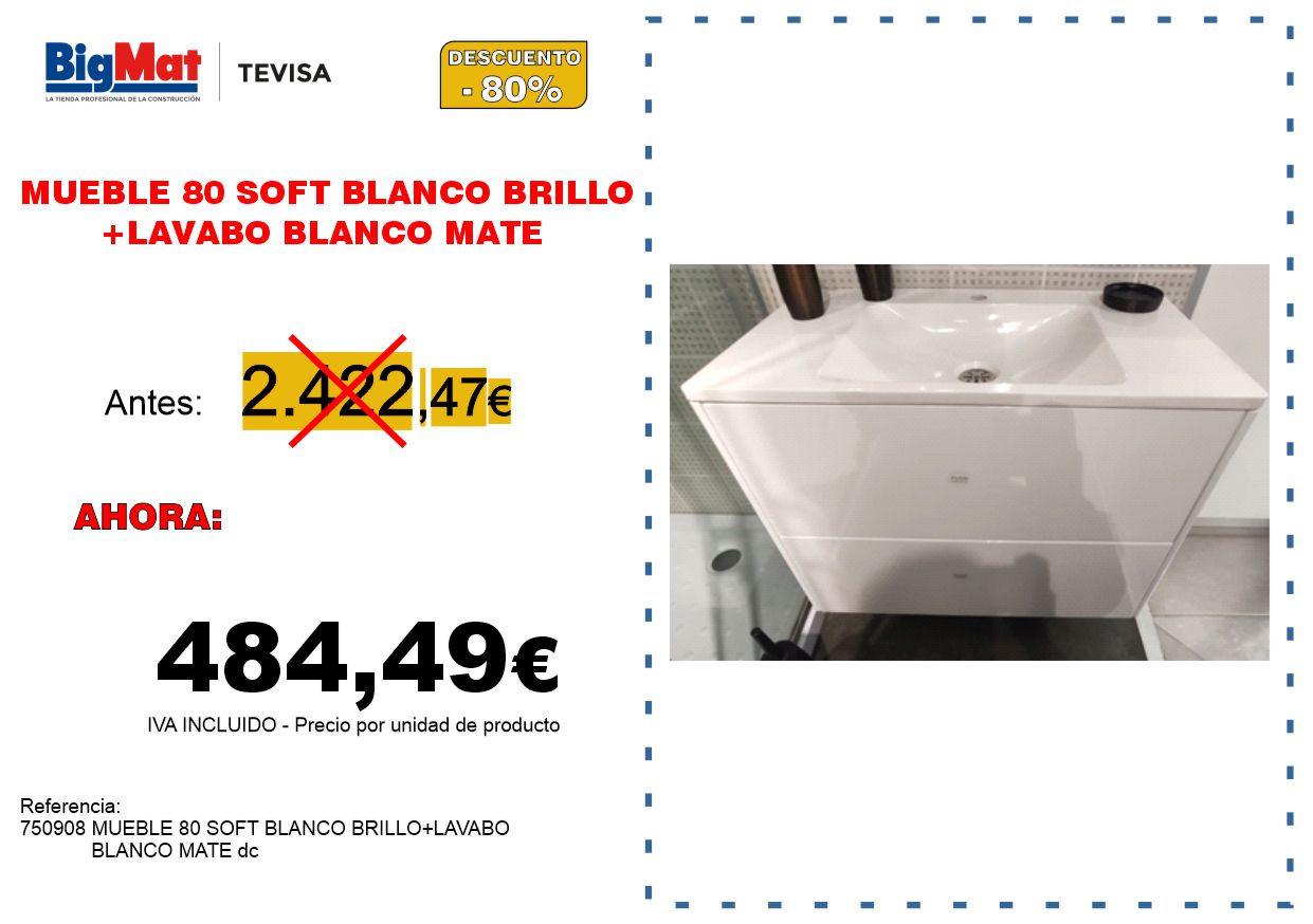 MUEBLE 80 SOFT BLANCO BRILLO+LAVABO BLANCO MATE