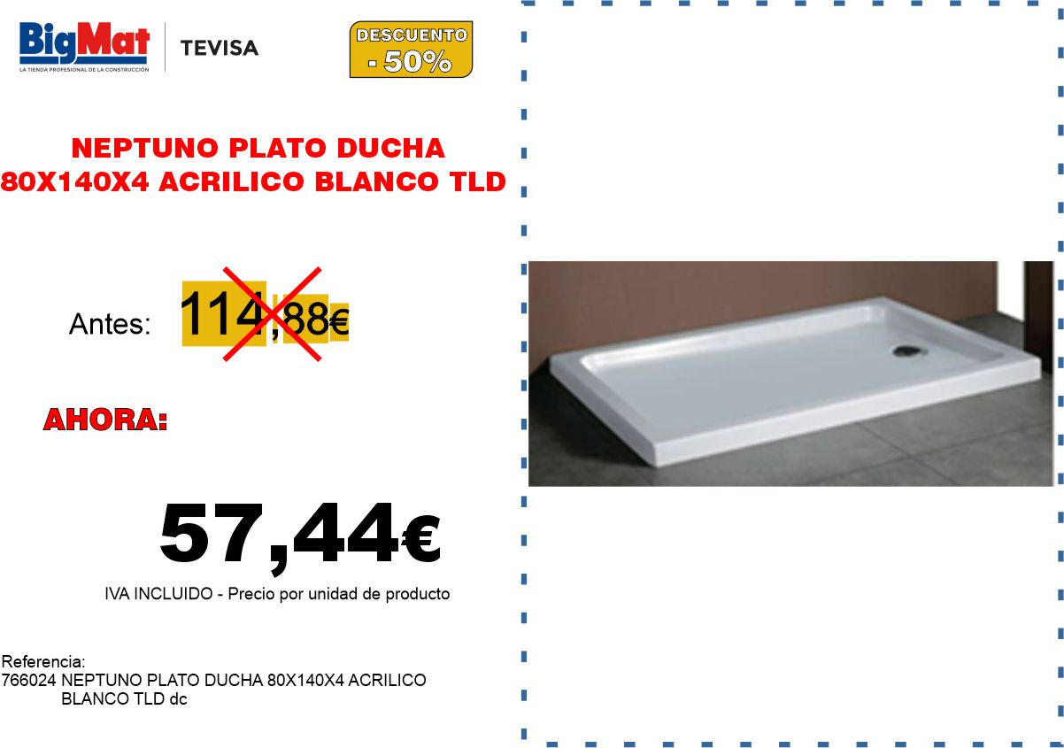 NEPTUNO PLATO DUCHA 80X140X4 ACRILICO BLANCO TLD